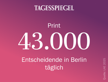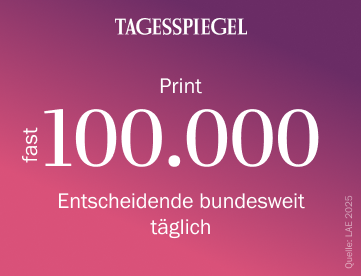Der Tagesspiegel bietet Ihnen neben seiner tagesaktuellen Berichterstattung jeden Dienstag die vielbeachteten „Agenda“-Seiten mit Hintergrundanalysen für Politik-Entscheidende. „Tagesspiegel-Background“ richtet sich indessen mit fachjournalistischen Briefings und Monitorings an eine besonders anspruchsvolle Zielgruppe aus Politik und Regulatorik. Ein breites Veranstaltungsangebot in den Bereichen Politik, Wirtschaft, Gesundheit und Wissenschaft ergänzen das B2B-Portfolio der Tagesspiegel-Gruppe.